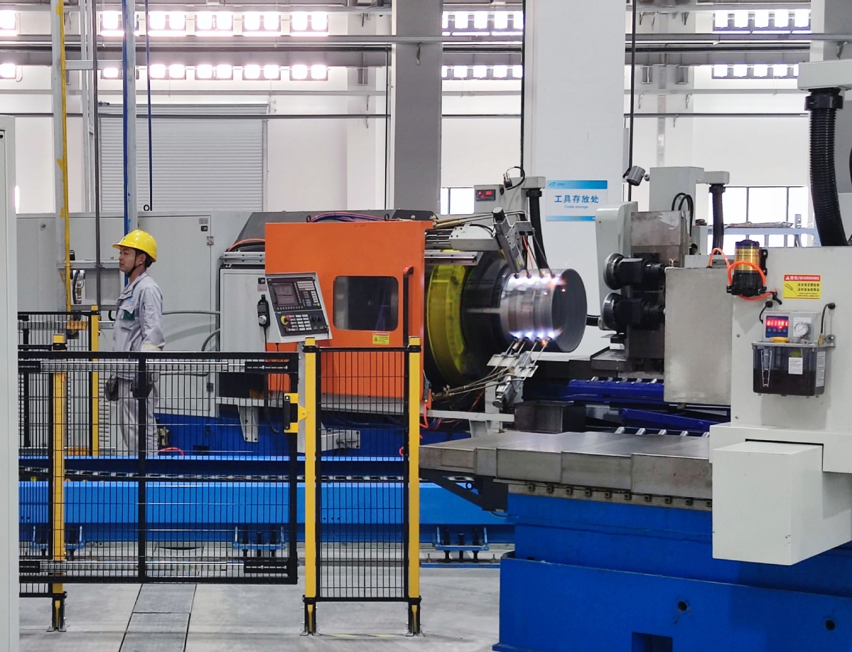 A staff member works at the new smart workshop of Jiangsu Guofu Hydrogen Energy Equipment Co Ltd in Zhangjiagang, Jiangsu province. [Photo by Peng Chao/chinadaily.com.cn]