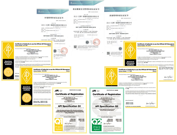 合力核心團(tuán)隊(duì)全部來自于國際四大油服,并建立了符合國際標(biāo)準(zhǔn)的質(zhì)量管理體系,取得了美國石油學(xué)會(huì)6A, 16A, 7-1, 5CT, Q1及Q2等一系列國際認(rèn)證。