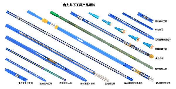 合力提供井下工具“研發(fā)+制造+服務(wù)”的整體解決方案,旨在為客戶提升作業(yè)時(shí)效和保障井下安全,從而提 高客戶的綜合收益。合力井下工具產(chǎn)品矩陣涵蓋了鉆井類與井筒干預(yù)類,主要針對鉆井過程中的鉆頭與地層匹配性差及破巖效率 低,邊際油與薄層油氣識(shí)別,固井質(zhì)量差,泥頁巖水化膨脹及地層蠕變造成的嚴(yán)重縮徑,大斜度大位移井鉆具托壓及粘滑、鉆壓 及扭矩異常波動(dòng)、巖屑床沉積,惡性卡鉆等問題;井筒干預(yù)中的超短半徑側(cè)鉆、磨銑效率低+連油自鎖、漏失井清砂等問題。