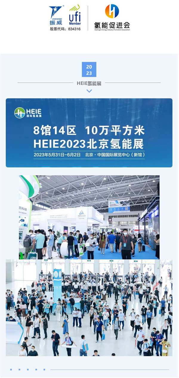 2023北京國際氫能技術(shù)裝備展覽會(簡稱:HEIE2023)由中國產(chǎn)業(yè)發(fā)展促進會氫能分會和振威展覽集團聯(lián)合主辦。將于5月31日-6月2日在北京•中國國際展覽中心(新館)舉行。展會設(shè)“8館14區(qū)”,總展覽面積10萬+平方米,預(yù)計參展企業(yè)1800余家,其中世界500強企業(yè)46家,國際展團18個,參觀人數(shù)將達12.3萬人次。