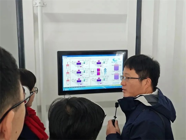 參觀團首先來到了,熱電聯(lián)供系統(tǒng)的產(chǎn)品線,氫儲能熱電聯(lián)供系統(tǒng)是氫港新能源在氫儲能領(lǐng)域的一項重要突破。它集成了氫能源的儲能,發(fā)電和供熱功能,提供了一種高效、環(huán)保、長時的綠色能源解決方案,實現(xiàn)了綠色能源的高效利用和多元化供應(yīng)。