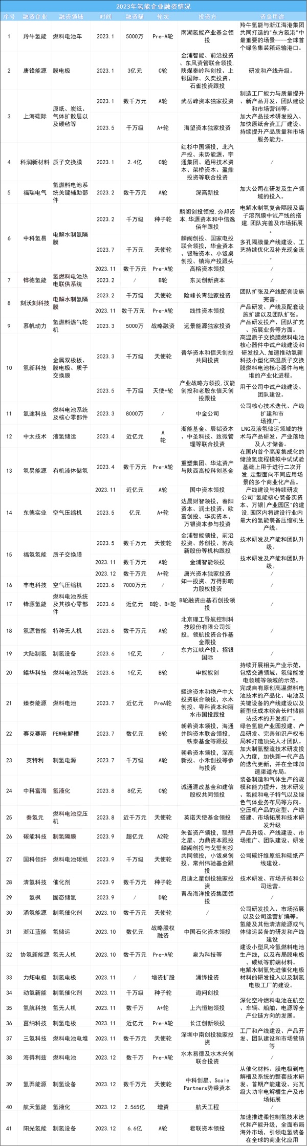 在2023年氫能企業(yè)的融資熱潮中,有15家企業(yè)成功獲得了單筆億元以上的融資,而6家企業(yè)更是完成了2輪以上的融資。其中,中科氫易和蘇州福氫兩家企業(yè)在短短的10個(gè)月和7個(gè)月內(nèi)分別完成了3輪融資,展現(xiàn)出強(qiáng)勁的發(fā)展勢(shì)頭。