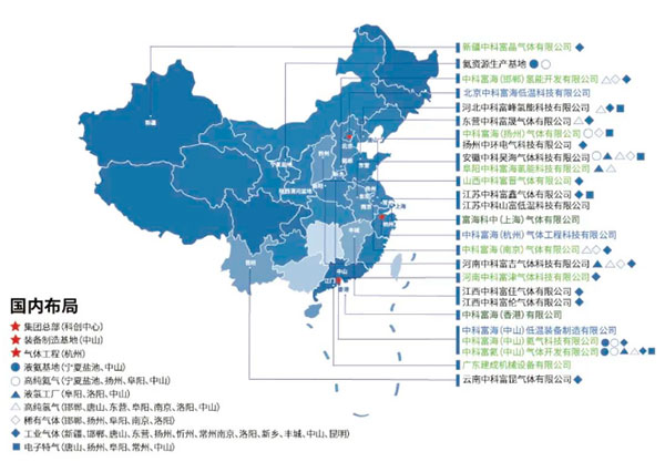 中科富海總部設(shè)立在北京,目前已成立25家分子公司,在鄂爾多斯建立BOG提氦示范工廠,在安徽阜陽(yáng)建設(shè)高純稀有氣體工廠和大型液氫工廠,在廣東中山建設(shè)集空分裝置、高純電子特氣、氦氣分裝、制氫于一體的綜合氣體島,在河南、山西、江蘇等地為多家化工、鋼鐵、光伏、鋰電池等企業(yè)提供了9萬(wàn)、3萬(wàn)、1萬(wàn)等級(jí)的空分裝置和管道供氣等服務(wù),形成以設(shè)備研發(fā)、集成制造、EPC工程總包、工廠運(yùn)行、氣體服務(wù)為一體的民族供應(yīng)商。中科富海已實(shí)現(xiàn)在大型低溫裝備與低溫工程、戰(zhàn)略氦資源及高純稀有氣體、氫能產(chǎn)業(yè)、高純電子特氣與工業(yè)氣體五大業(yè)務(wù)板塊規(guī)劃布局,奠定其在全國(guó)大鄂爾多斯盆地、京津翼、長(zhǎng)三角、珠港澳大灣區(qū)重點(diǎn)區(qū)域的長(zhǎng)遠(yuǎn)發(fā)展。