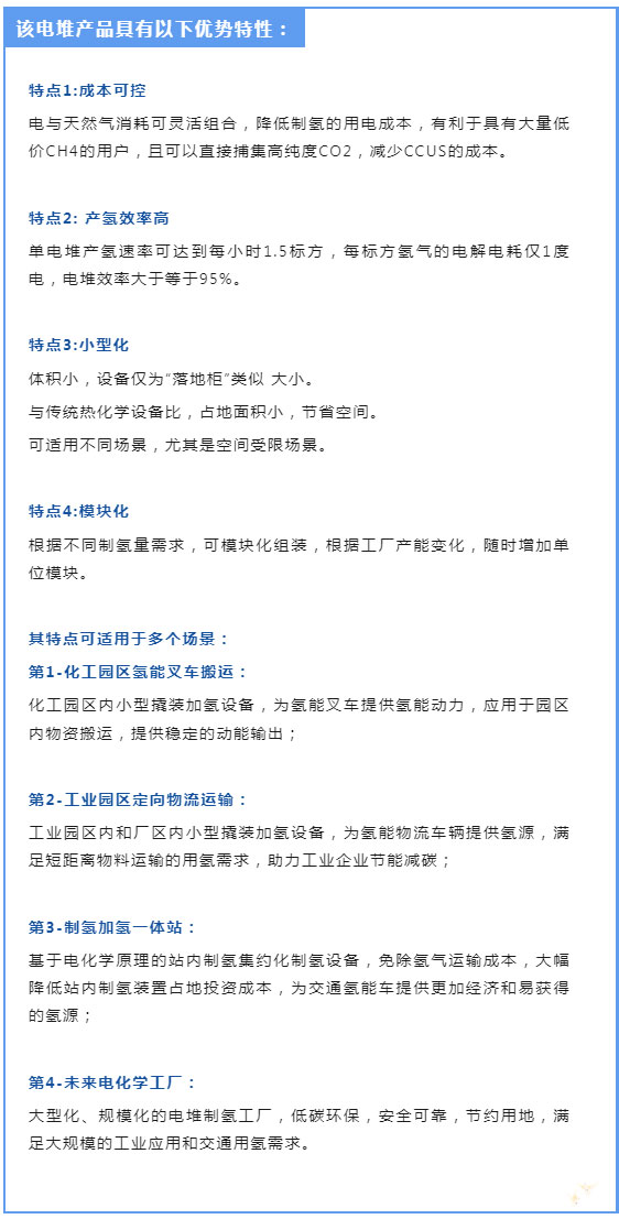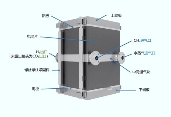 C C-SOEC-CH4電解水耦合天然氣制氫設(shè)備,極具潛力的藍(lán)氫生產(chǎn)方式。是電堆科技在高溫固體氧化物SOEC電解水制氫基礎(chǔ)上進(jìn)行的創(chuàng)新性技術(shù),在電解水的過程中加入甲烷,起到輔助活化作用,提升反應(yīng)活性,電解生產(chǎn)氫氣及可直接捕獲的高純度二氧化碳。