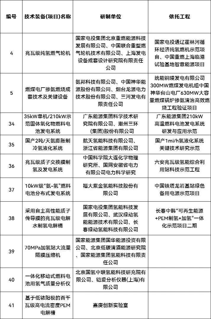 2023年10月,國家能源局發(fā)布了第三批能源領域首臺(套)重大技術裝備(項目)名單,在58個裝備(項目)名單中,與氫能源相關的共10個。技術范圍涵蓋氫燃氣輪機、摻氨燃燒、固體氧化物燃料電池、氫液化、質(zhì)子交換膜制氫、氫-氨燃料電池、兆瓦級電解槽、隔膜壓縮機、氫氣質(zhì)量分析儀、PEM電解槽等。