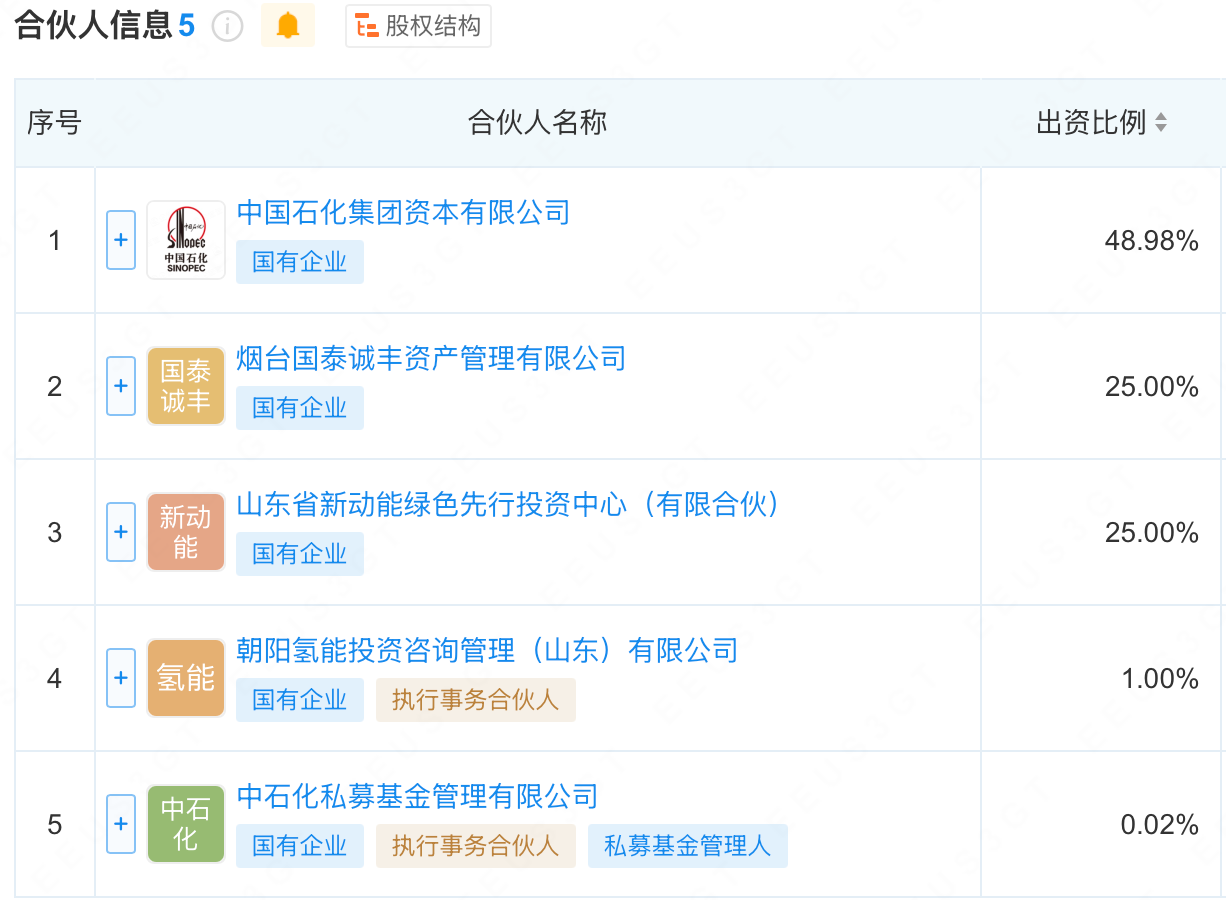 基金的執(zhí)行事務(wù)合伙人為中石化私募基金管理有限公司及朝陽氫能投資咨詢管理 (山東) 有限公司。其中: