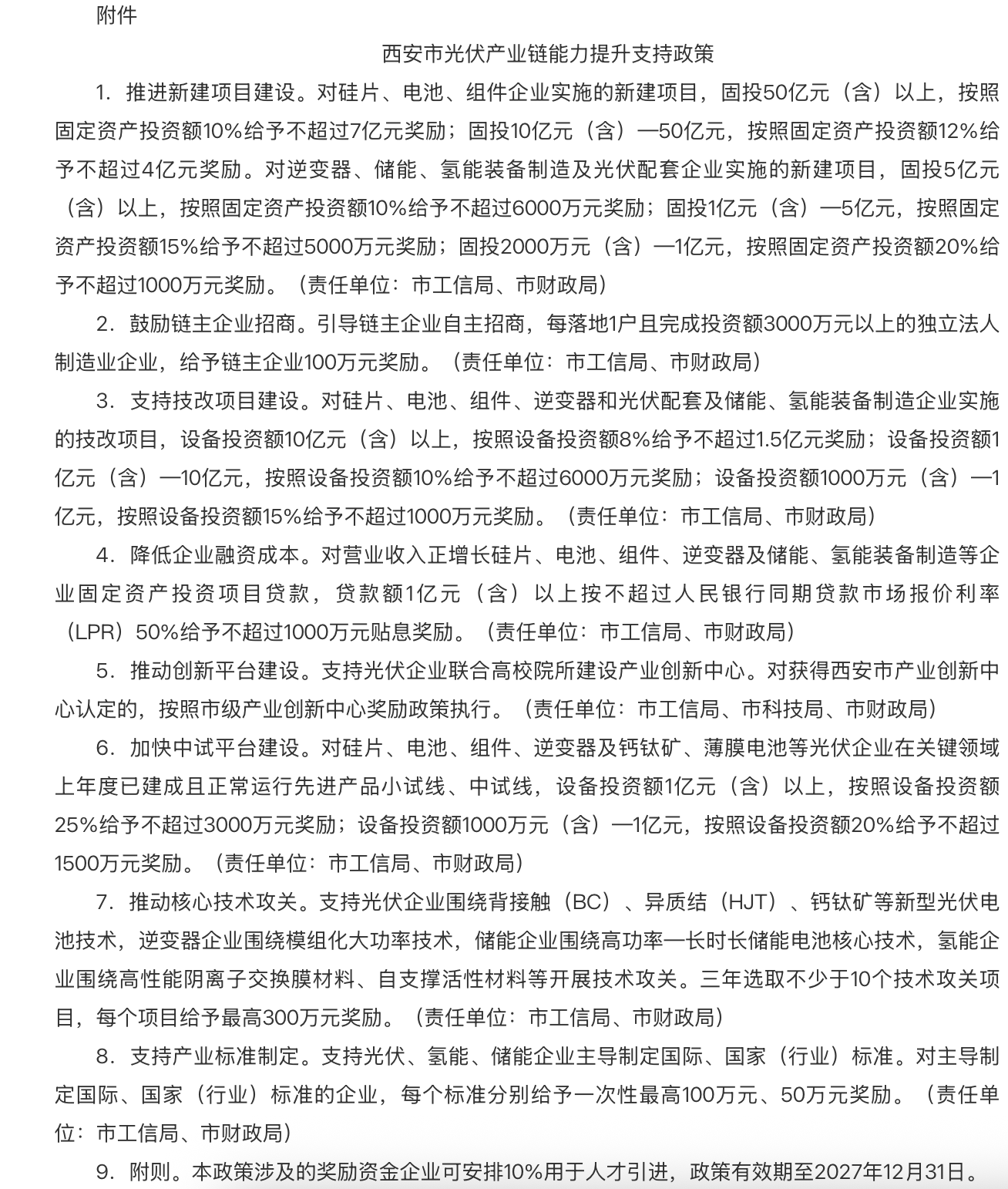 (圖片來源:《西安市支持光伏產(chǎn)業(yè)鏈能力提升實施方案(2025—2027年)》)