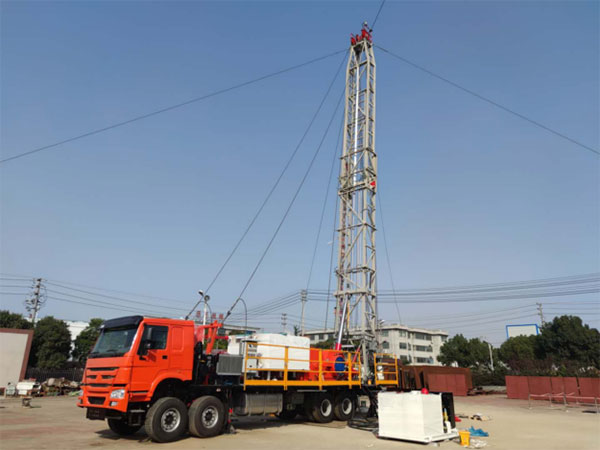 車裝鉆機是將動力系統(tǒng)、絞車、井架、游車系統(tǒng)及傳動系統(tǒng)等部件全部裝載于自走式底盤上,具有作業(yè)負荷大、性能可靠、越野能力強、移運方便,作業(yè)和搬遷費用低等特點